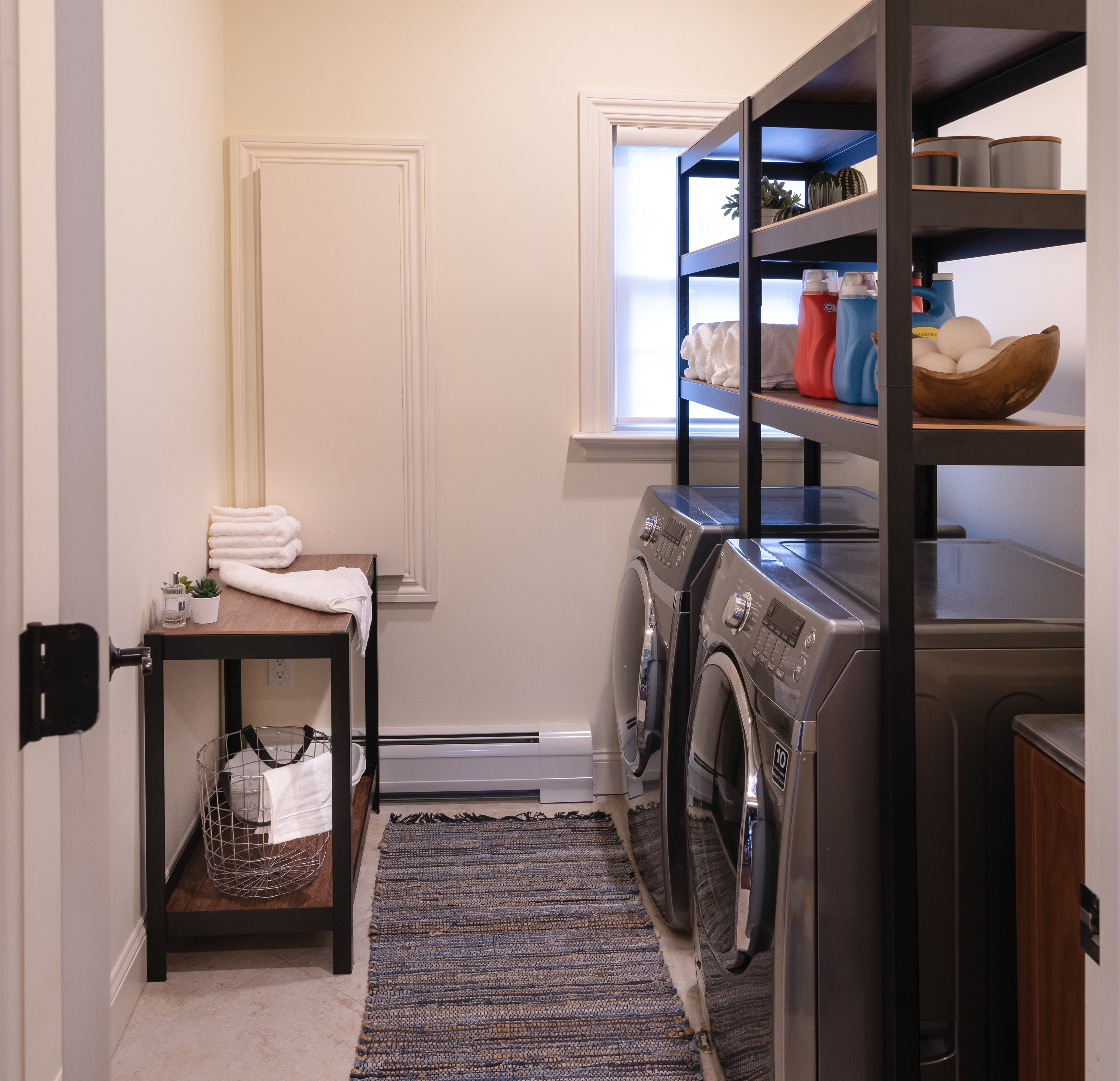 Leave the bottom of the modules open to accommodate heavy items like washing machines. You can also add a simple folding station for added convenience!